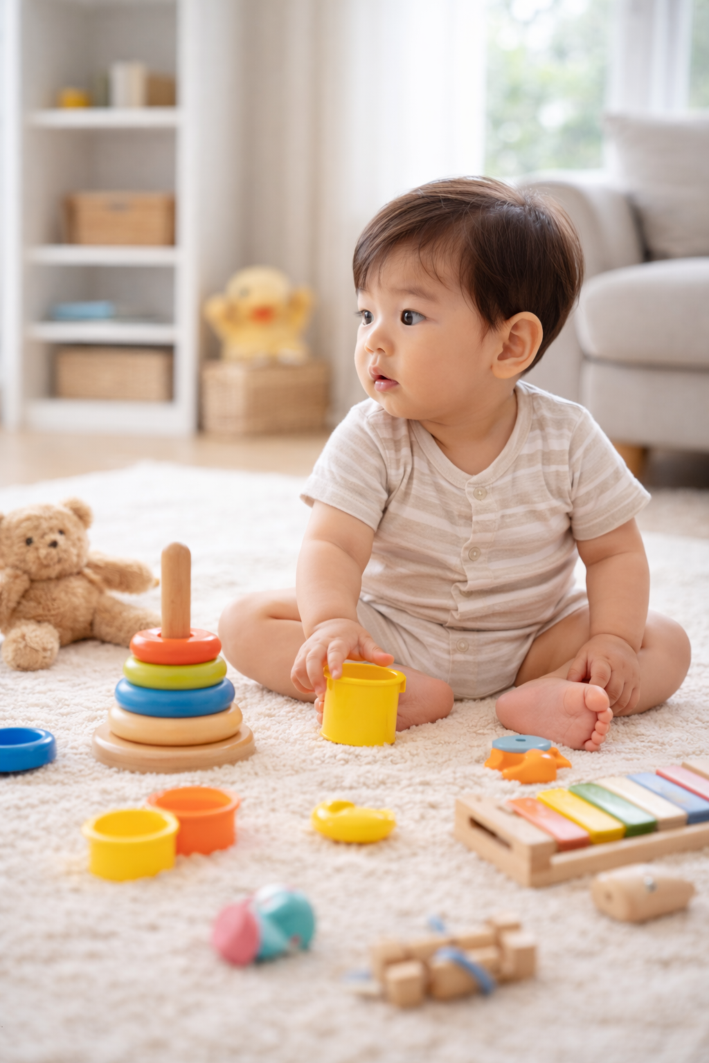 그러나 이 시기의 혼자 있는 시간은 정서적 단절이 아니라, 감각 정리와 각성 조절의 과정에 가깝다. 아기는 스스로 자극을 정리하며, 자신의 상태를 인식하는 연습을 하고 있다.